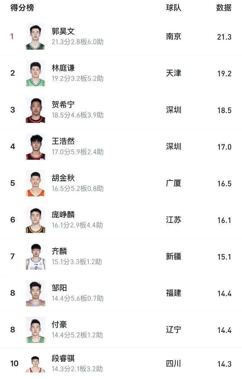 500彩票网官方-连克北京上海,国内球员得分榜前五占俩,贺希宁王浩然太猛了